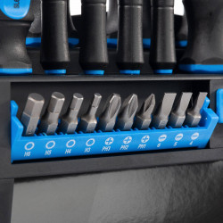 - Сменные биты 6.35х25 мм: SL: 4.0, 5.0, 6.0 мм, РН: РН1, РН2, РН3, PZ: PZ0, PZ1, PZ2, PZ3, TORX: T10, T15, T20, T25, T30, T40, HEX: H3, H4, H5, H6