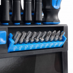 - Двухкомпонентные рукоятки со специальными гранями в основании захвата для исключения скатывания отвертки с поверхности