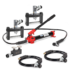 - Состав набора - 2 разгонщика фланцев клиновой РФ-5-38, 1 помпа гидравлическая ПМР-7004, 1 кран распределительный КГР-2, 2 рукава высокого давления РВД-2